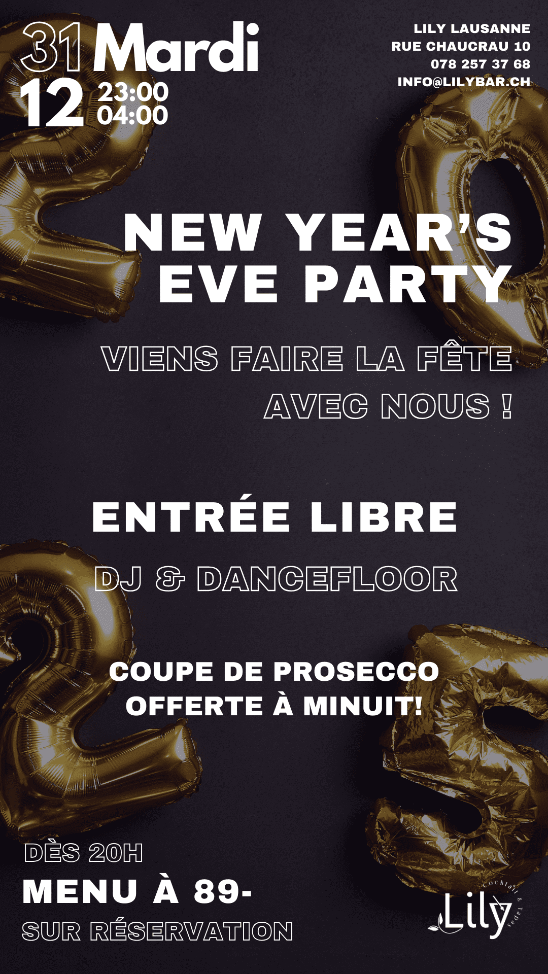 Venez fêter la nouvelle année dans une ambiance chaleureuse et festive! Menu à 89- sur réservation uniquement! DJ & Dancefloor - Entrée libre! Coupe de Prosecco offerte à minuit!